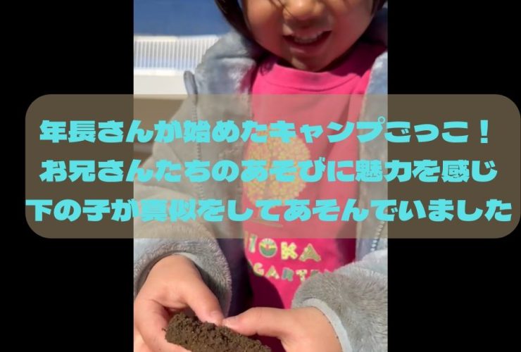 こどもたちはあそびの天才! 石や虫、自然の中にあるものすべてがあそびのツールです! 物だけではなく、周りの環境、仲間、先生など・・・ ありとあらゆるも … 続きを読む 年長さんが始めたキャンプごっこ!お兄さんたちのあそびに魅力を感じ下の子が真似をしてあそんでいました(^O^)