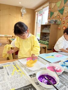 絵の具ってたのしいね♪ りすぐみさんの絵の具あそび☆
