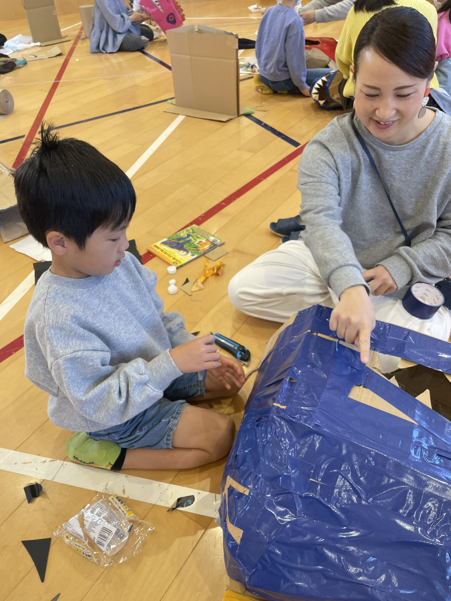空高く、天高く、元気に泳げ!!!こいのぼりを制作中。
